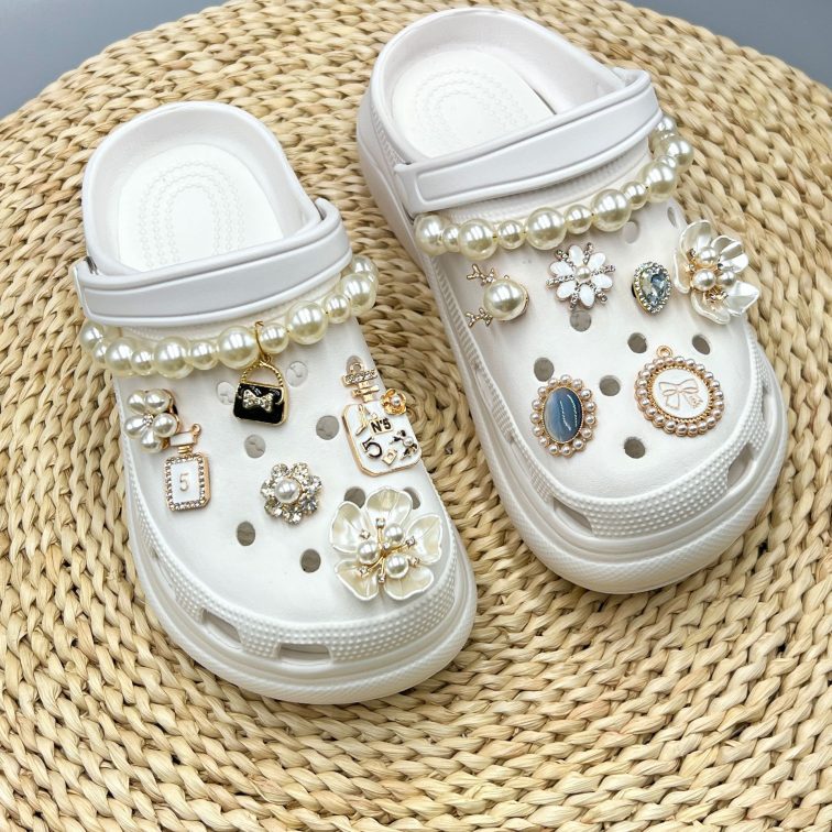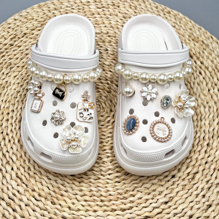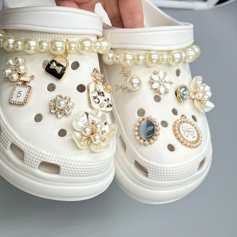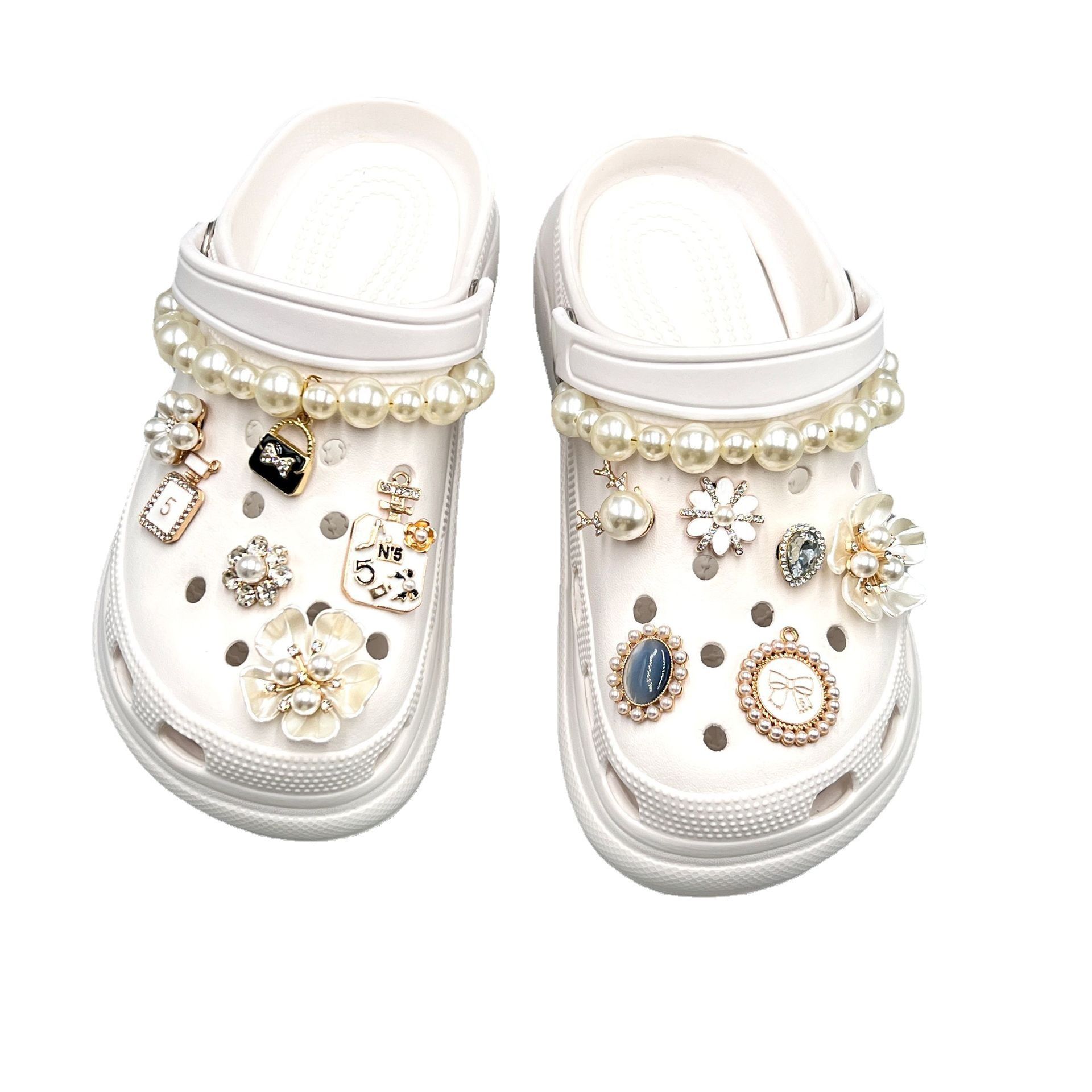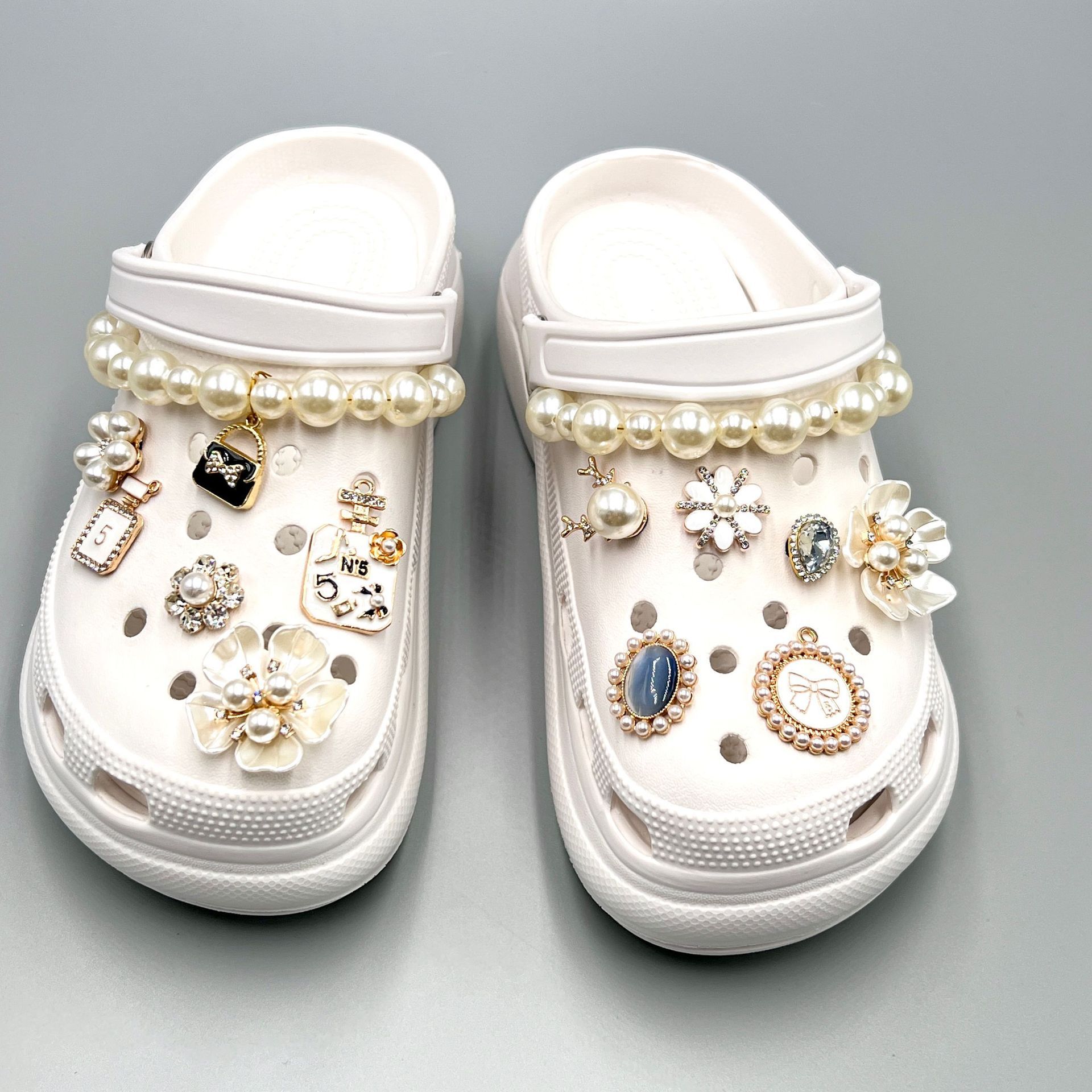 A set of Crystal Shoe Charms Fits Fashion Decoration For Clog Shoes Artificial Diamond Bling Chain Artificial Jewelry Accessories; Crocs Decoration