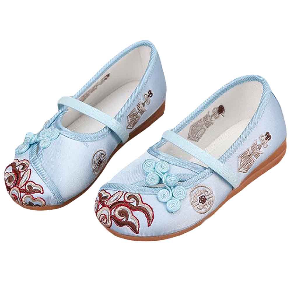 Blue – Girls Ballet Flats Chinese Traditional Embroidery Shoes Slip On Shoes