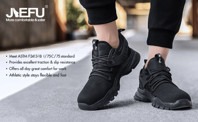 JIEFU Non Slip Shoes for Men Food Service Slip On Sneakers Men Steel Toe Shoes for Work Comfortable Construction Safety Footwear