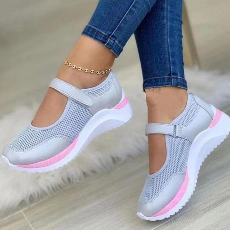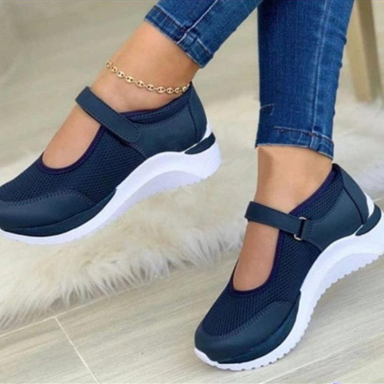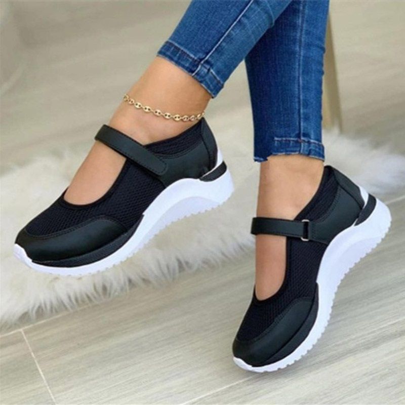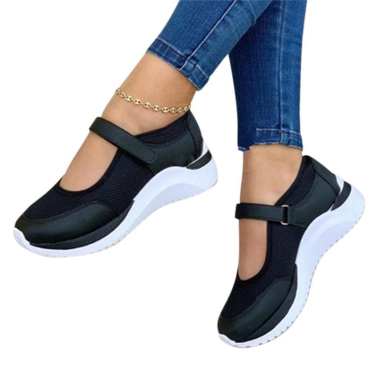 Women Vulcanized Shoes Spring Autumn Hook&Loop Ladies Flat Shoes Causal Comfort Female Mesh Breathable Woman Sneakers Mom Shoes